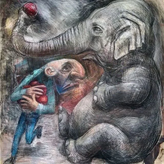 New mixed media work by Nathalie Tierce for her solo show Villains and Heroes at Brassworks Gallery