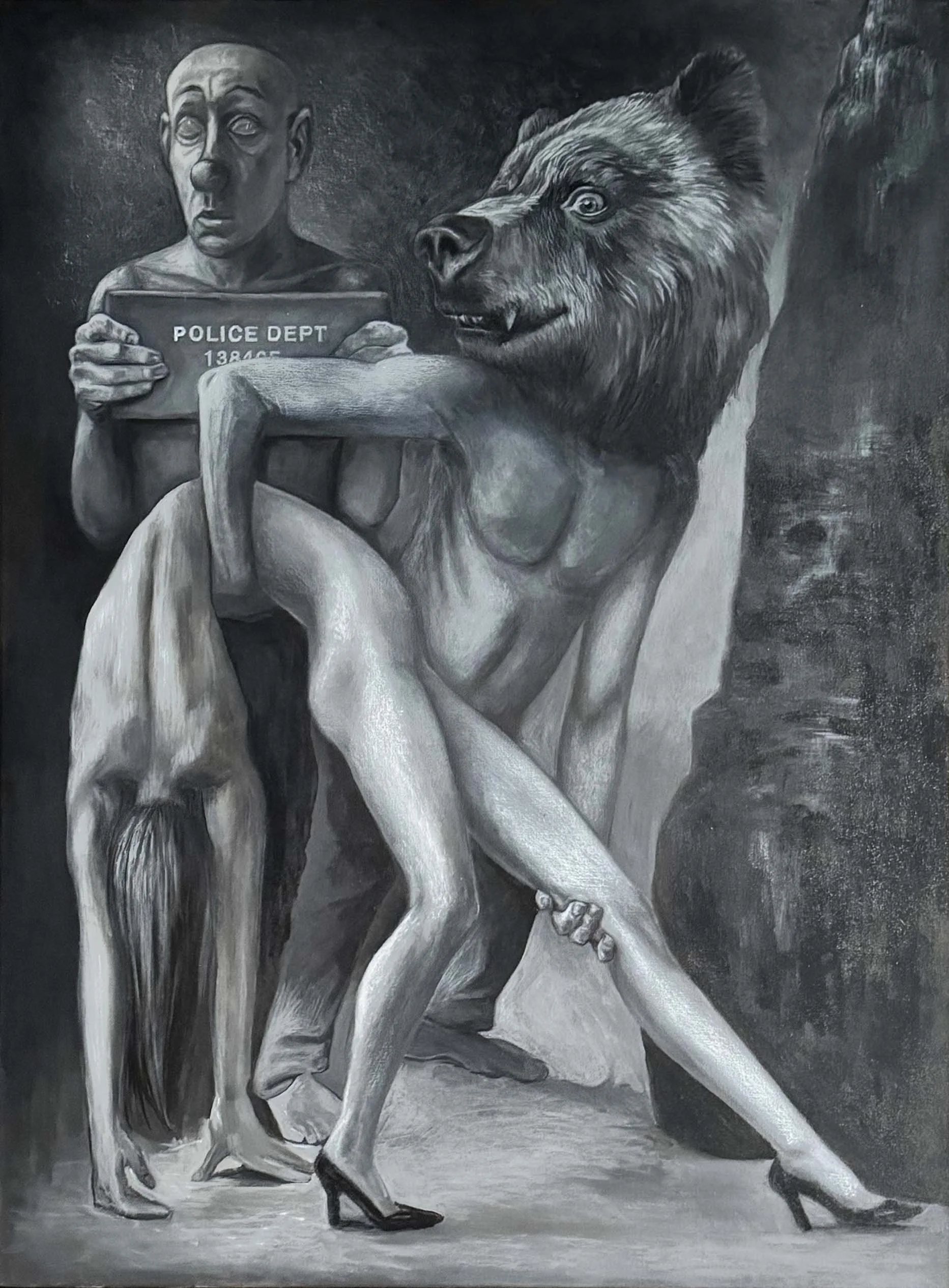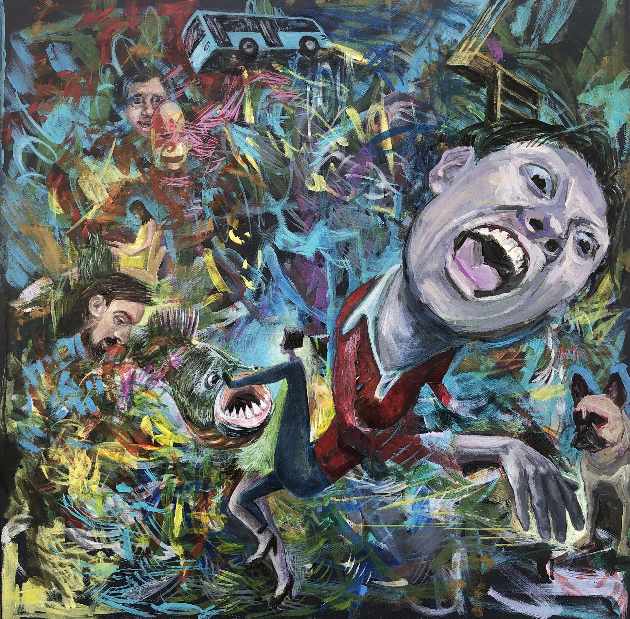 The Bear, Clown and Lady, 36" x 48" Acrylic on canvas