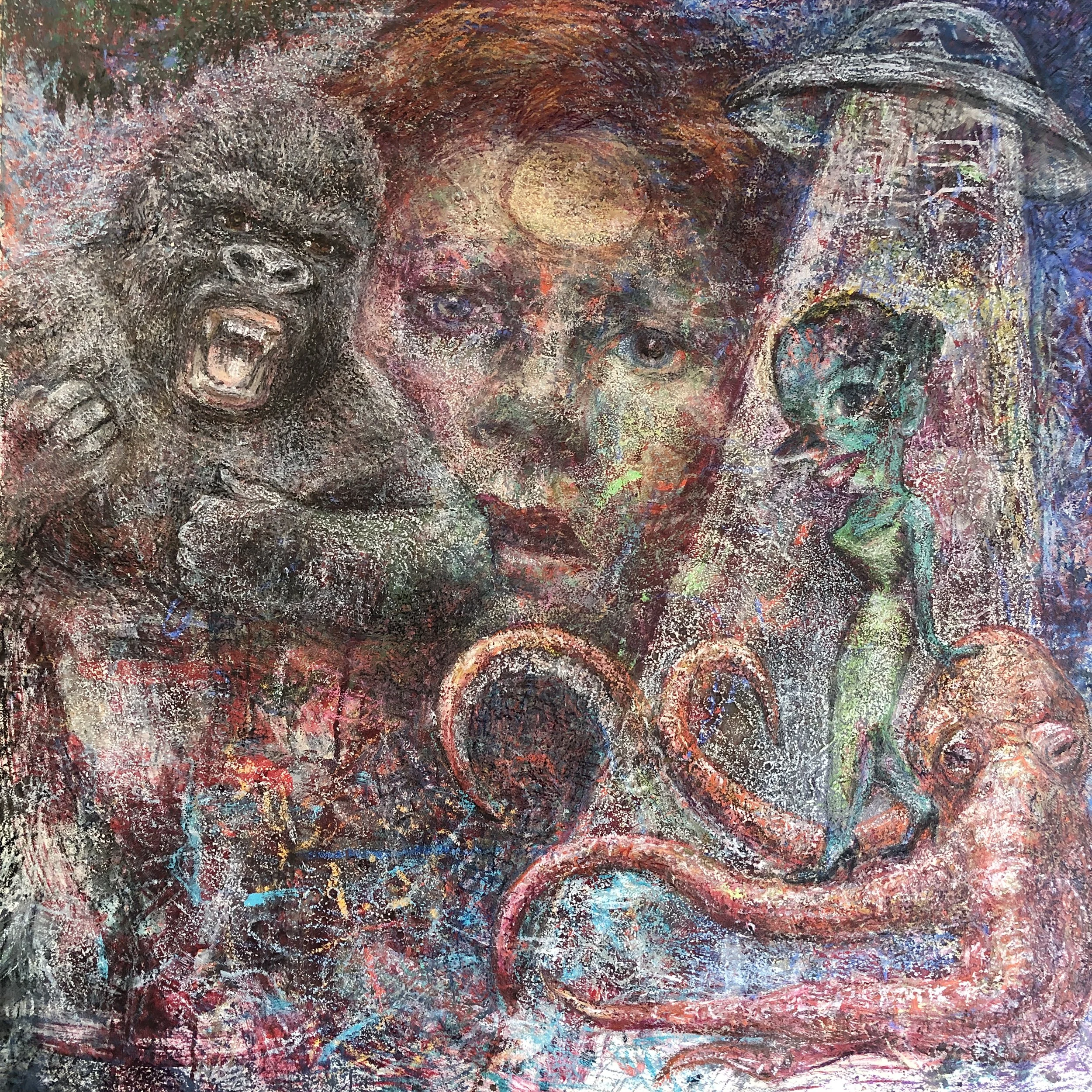 My Favorite Aliens, 42" x 42" Paint and oil pastel on paper