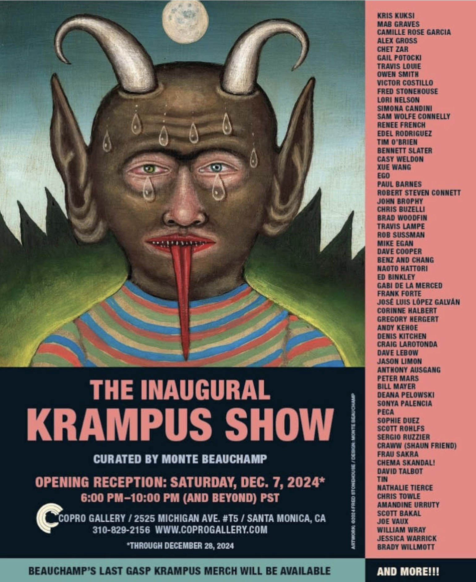 My painting Mother Krampus and the Lost Souls will be featured alongside my husband Chris Towle's Creepy Krampus in a show curated by Monte Beauchamp at Copro Gallery, Sant Monica, CA