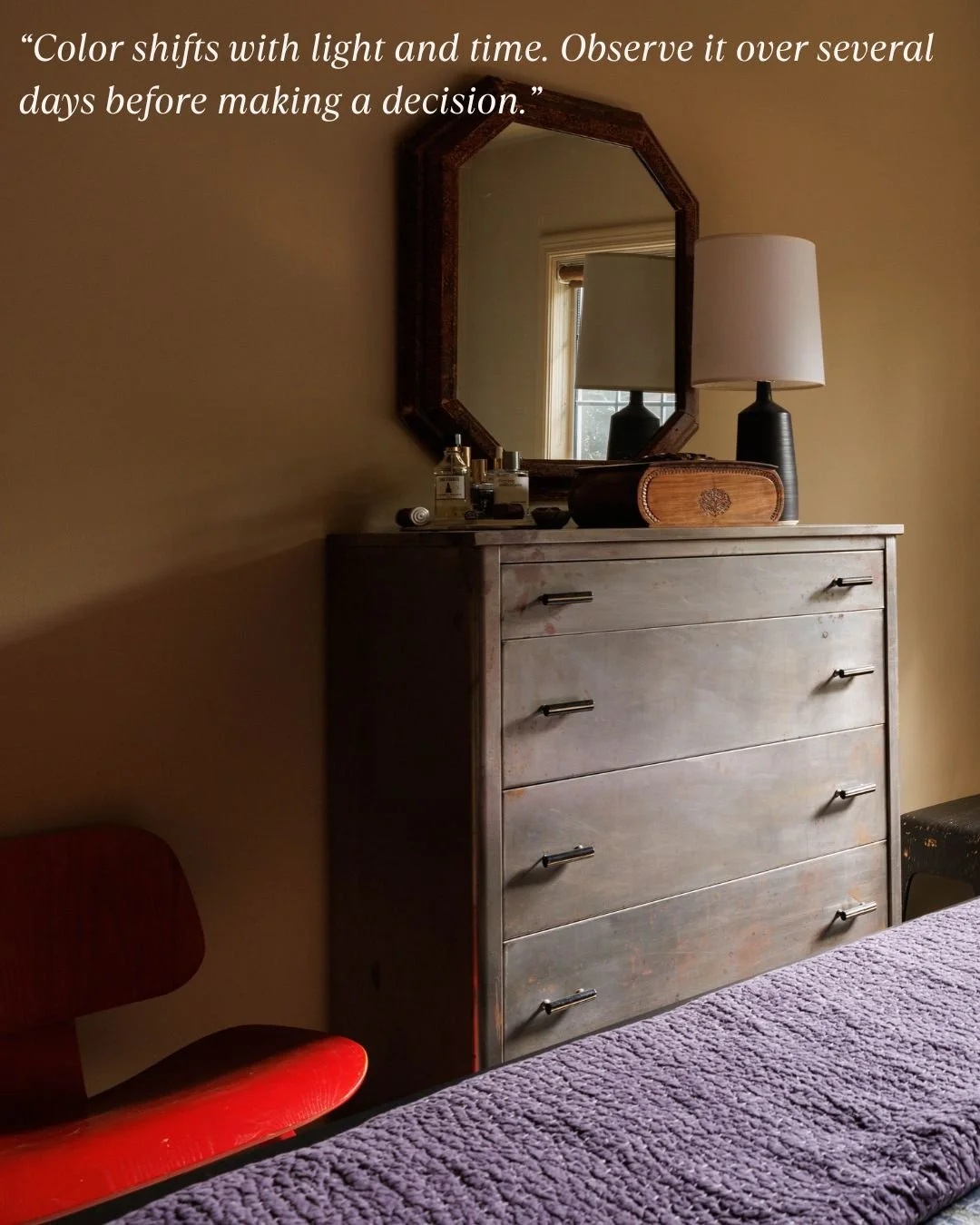 Southern California is known for its warm, golden light - especially in late afternoon. That kind of sunlight can make colors appear more saturated, sometimes even exaggerated. So, when I use bold hues here, the concern isn’t that they’ll feel flat - it’s that they might overwhelm or cause “color bounce,” where walls reflect more color into the space than expected.