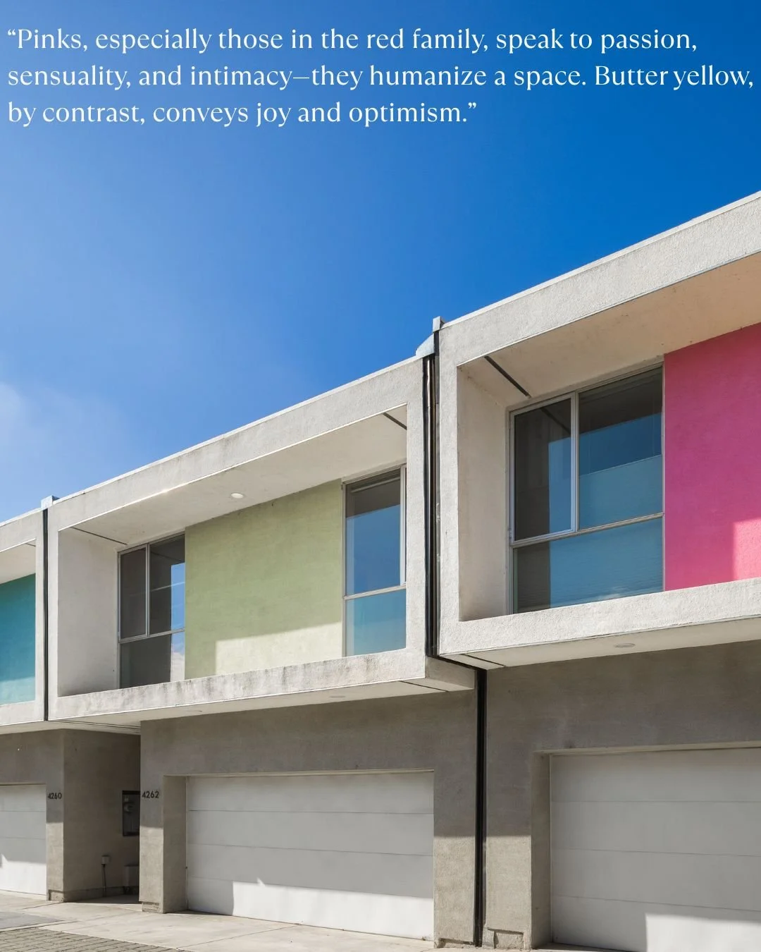 That is where colors like millennial pink and butter yellow entered the scene. Pinks, especially those in the red family, speak to passion, sensuality, and intimacy - they humanize a space. Butter yellow, by contrast, conveys joy and optimism. Psychologically, it sparks energy and forward motion, unlike the introspective nature of blues and greens.