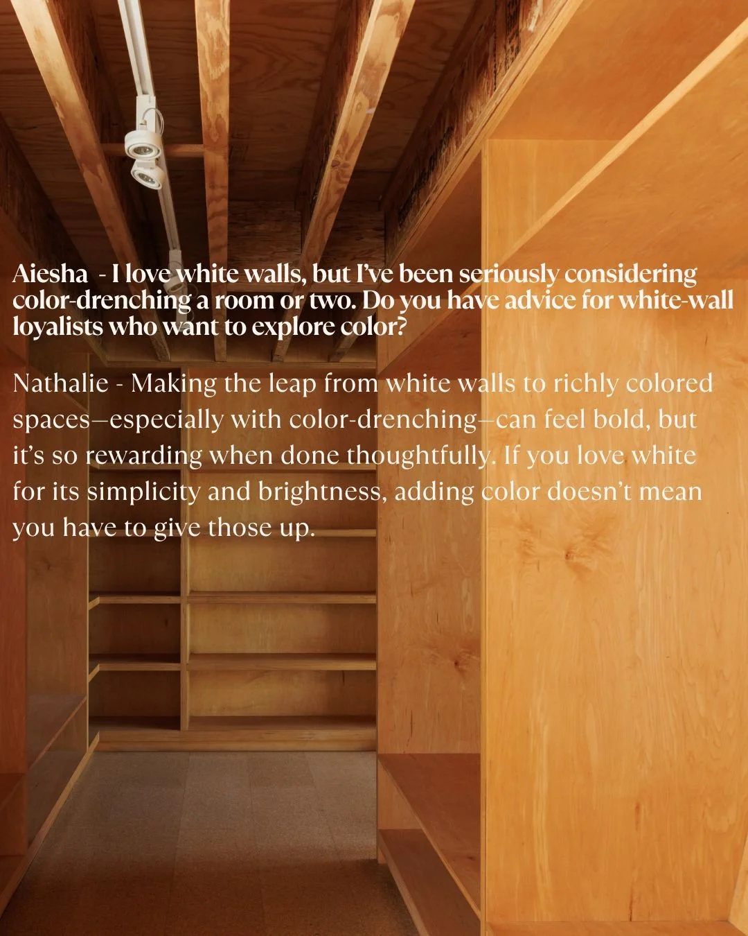 Aiesha: Nathalie, every time we talk, I walk away with new insight about color. But for those unfamiliar with your background, how did you find your way into color consulting?