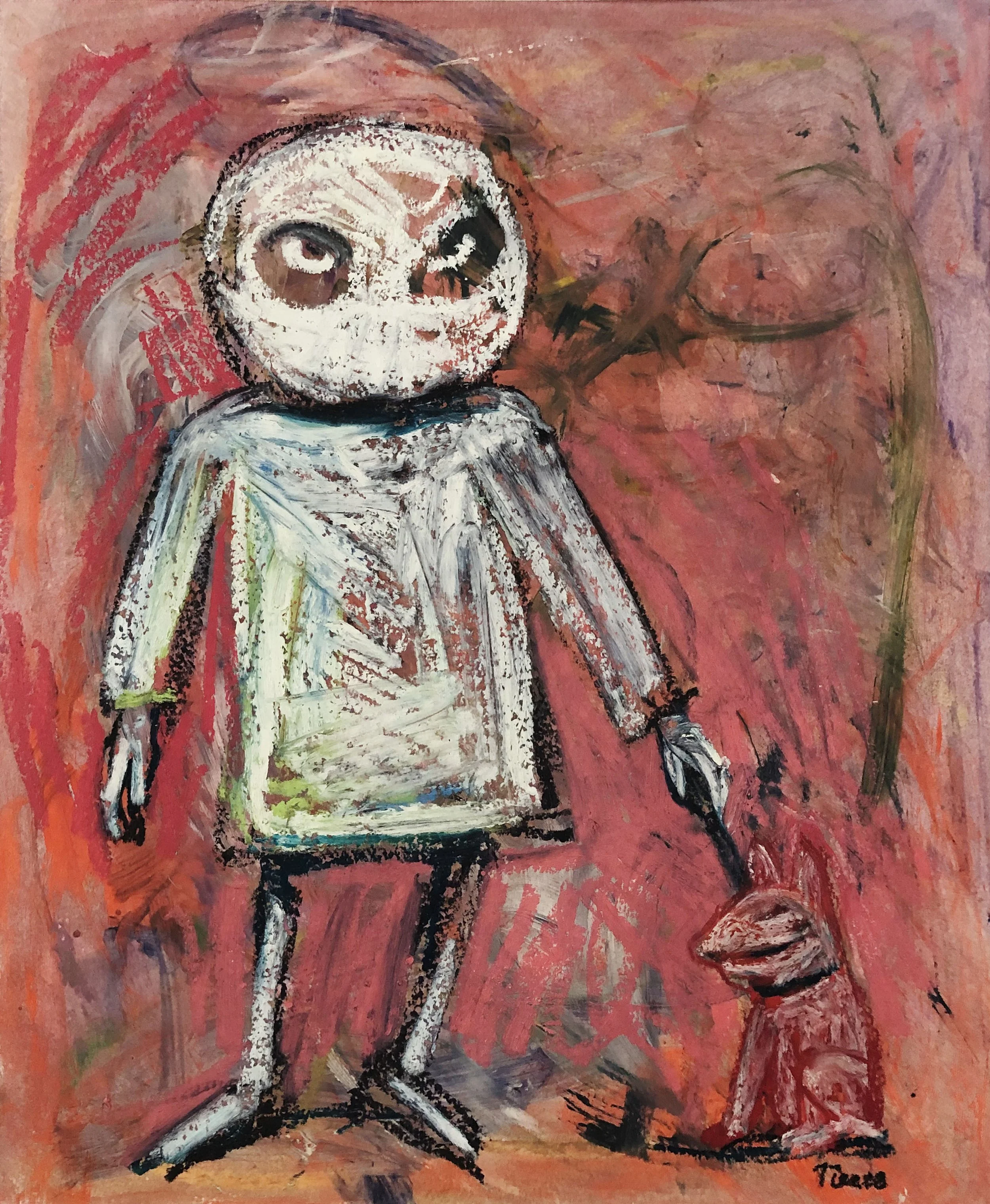 Demon Dog, Oil pastels on cradled board, 12” x 12”. Nathalie Tierce