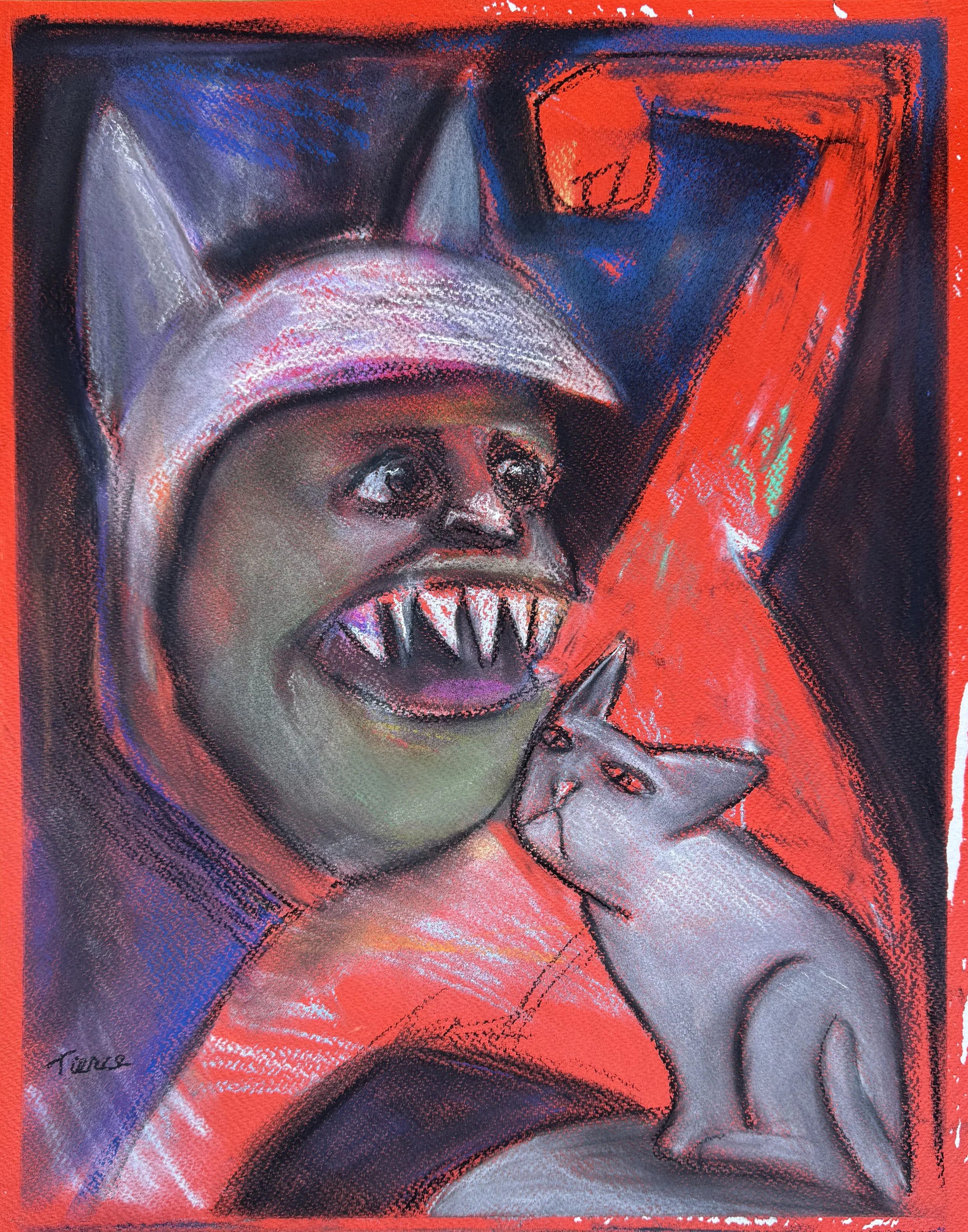 Gatekeeper, Oil pastel on paper, 13” x 16”. Nathalie Tierce